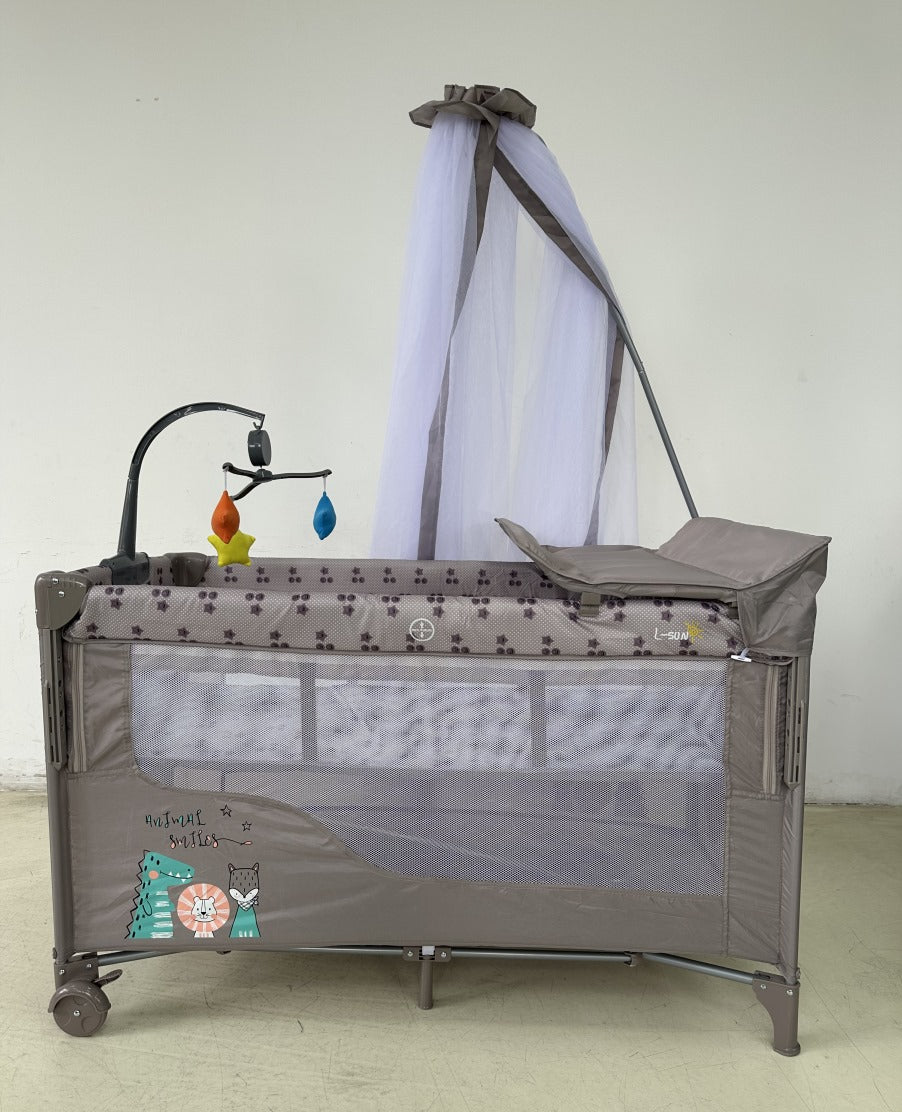 - Sklopivo i Kompaktno: Kada nije u upotrebi, krevetić se lako sklapa za praktično pohranjivanje. Kompaktni dizajn čini ga učinkovitim rješenjem za prostor u dječjoj sobi.