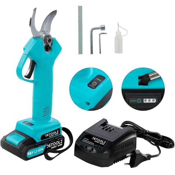 - Snaga i Izdržljivost: električne škare s 2 baterije od 48V i 8Ah, idealne za vinogradarstvo i voćarstvo.