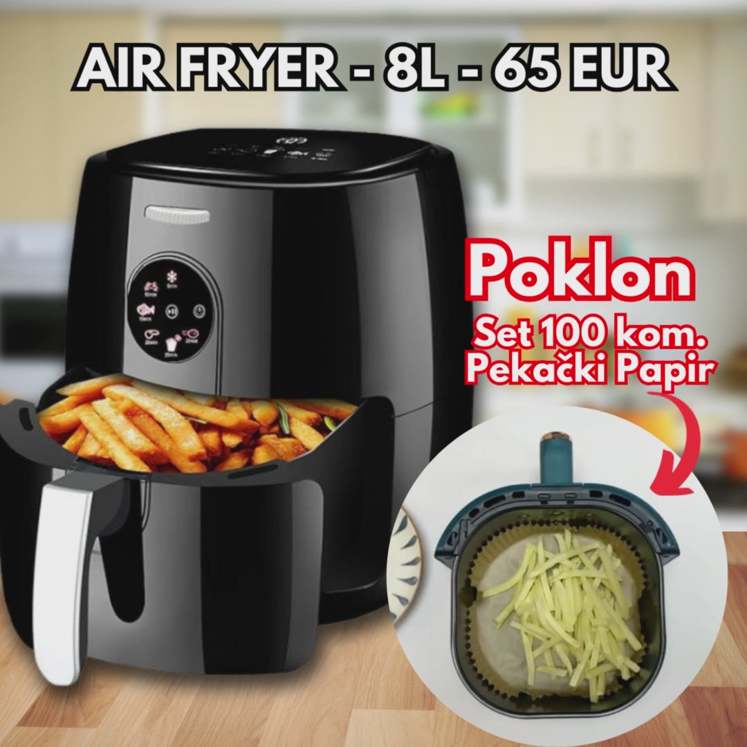 Friteza s vrućim zrakom SonyMax SN80181, 8L + POKLON - Set od 100 papira za pečenje za AirFryer