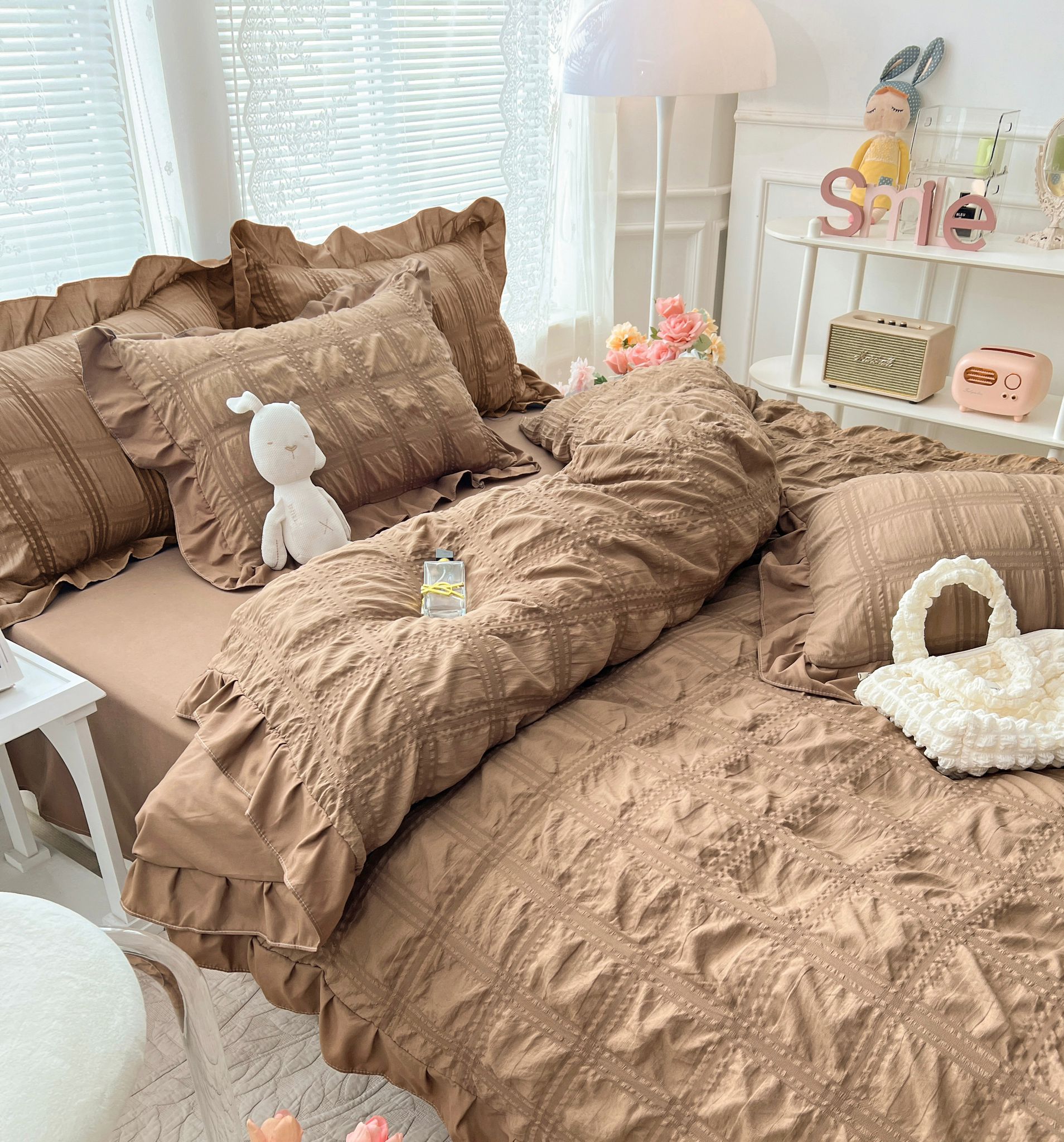 Ovaj krevetni set odlikuje se raznolikošću modela i boja, tekstura je fina i udobna, pruža dašak elegancije i dobrog ukusa vašoj spavaćoj sobi.