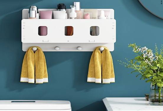 Polica Organizator s Držačem za Ručnike za Kupaonicu - Ojednostavite Svoju Dnevnu Rutinu Osobne Higijene