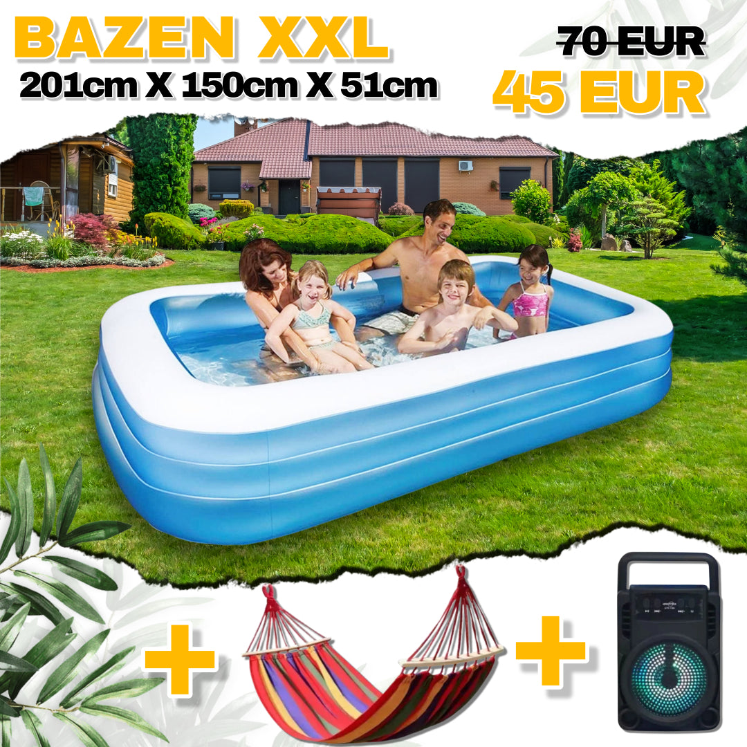 Ponuda 3u1: Naduvni bazen XXL + Viseća mreža + Prijenosni zvučnik