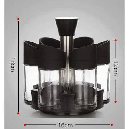 Ovaj set za začine donosi organizaciju i eleganciju u vašu kuhinju. Rotirajući stalak 360° omogućuje vam brz i jednostavan pristup svim začinima, dok poklopci s različitim vrstama rupa osiguravaju precizno doziranje za svako jelo.