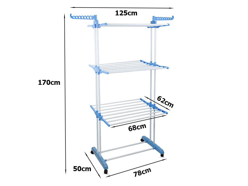 Praktično okomito sušilo za rublje na 3 razine s kotačićima koristan je uređaj za sušenje rublja u ograničenom prostoru.