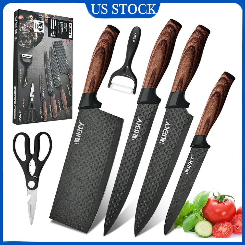 Premium Set Noževa 6 Dijelova s Škarama i Guljačem - Nehrđajući Čelik, Neljepljiv, Njemački Dizajn