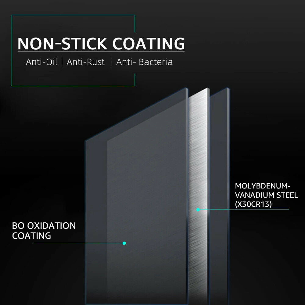 Izdržljiva Konstrukcija: Izrađeni od čelika vrhunske kvalitete s Rockwell tvrdoćom od 58, ovi noževi su otporni na hrđu, koroziju i promjenu boje.