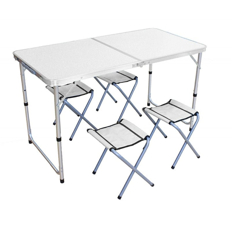 Prijenosni sklopivi stol + 4 stolice - za piknik i kampiranje, podesive visine