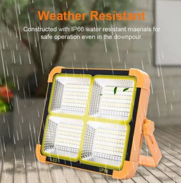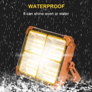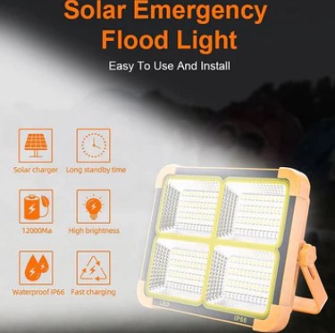 Ovaj projektor od 100 W s integriranim solarnim panelom i eksternom baterijskom funkcijom višenamjenska je LED svjetiljka s autonomnim punjenjem uz pomoć polikristalnog solarnog panela kojim je opremljen ili iz mreže.
