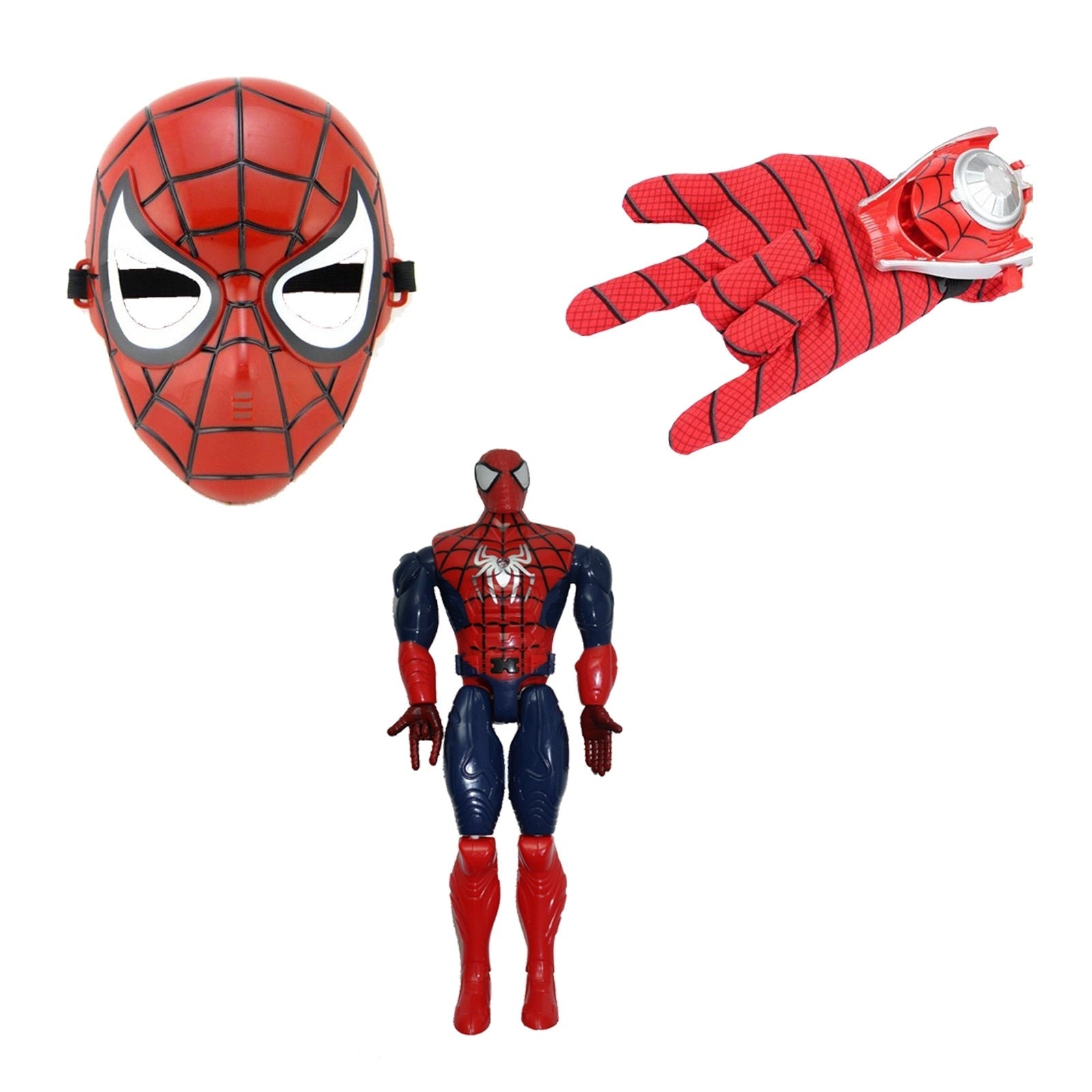 Set 3 u 1 rukavica s izbacivačem pauka, maskom i figurom, crvena, 3+ godina