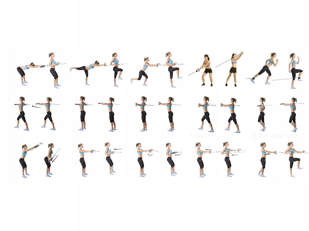 - Kompletan Set: Uključuje pet elastičnih traka različite elastičnosti, koje se mogu pričvrstiti na ručke prema potrebi.