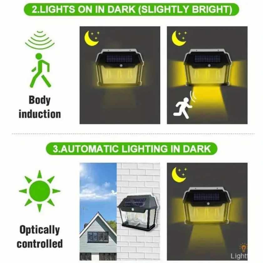 Solarno Vanjsko Osiguranje: S 3 LED žaruljama, može se postaviti na balkone, terase ili ulaze u garažu. Brzo se puni pomoću solarnog panela i ima veliki kapacitet baterije od 1800mAh.