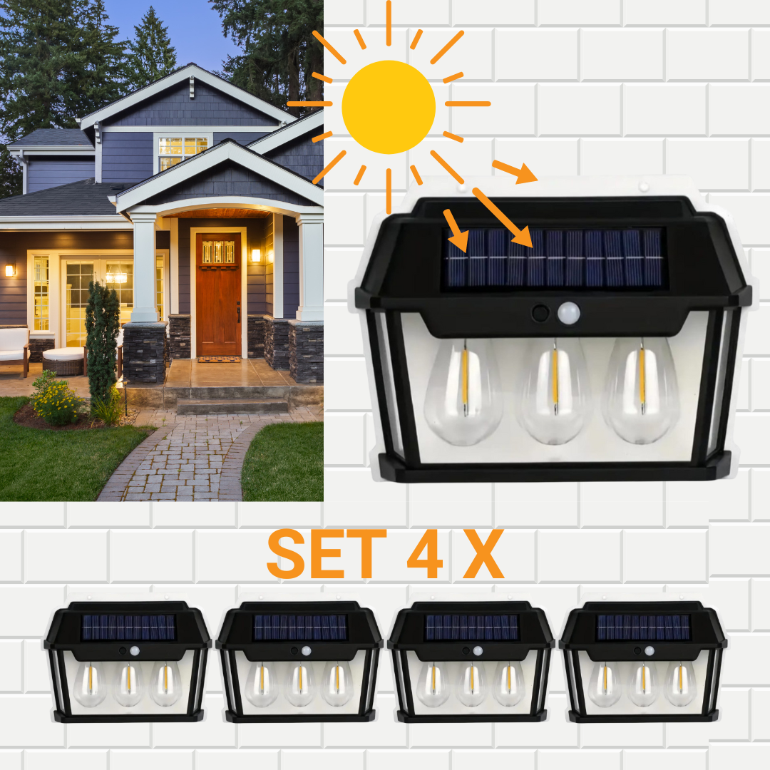 Set od 4 x Solarna Vanjska Svjetiljka Tipa Lampiona, s 3 Žarulje, Senzorom Pokreta, 38W
