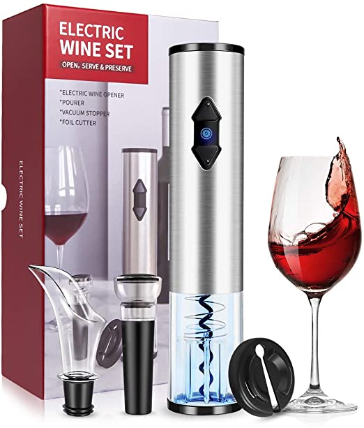 Colecția Wine 4 in 1 - Pachet cu extractor electric pentru sticle de vin, cuțit de folie, conservator și turnător.