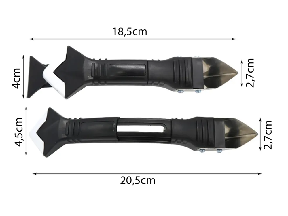 - Dizajn 3u1: Alat kombinira rezni nož, špatulu i strugač, pružajući sveobuhvatnu funkcionalnost za različite zadatke.