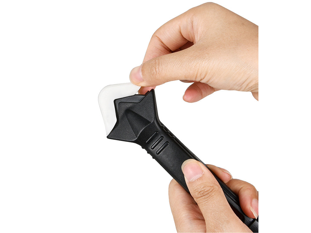 - Posebno Oštar Plastični Vrh: Posebno oštar plastični vrh idealan je za uklanjanje ostataka silikona s pločica i drugih ravnih površina.