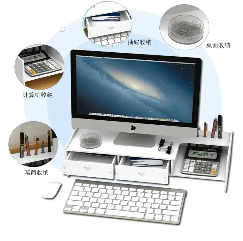Stalak Organizator za Prijenosno Računalo ili Monitor s 2 Ladičnim Pretincima, Prostorom za Tipkovnicu i Podlogom za Olovke