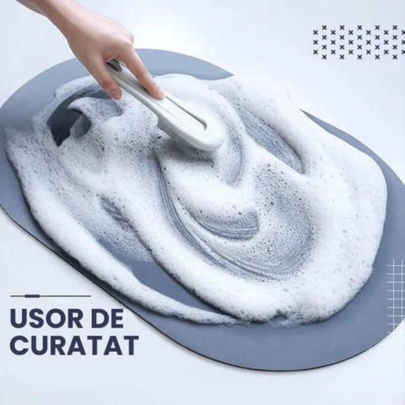 Baia o sa aibă un alt aspect cu acest covoraș. Designul inovator și culorile simple pe care le are, fac să se potrivească cu orice amenajare a locuinței.