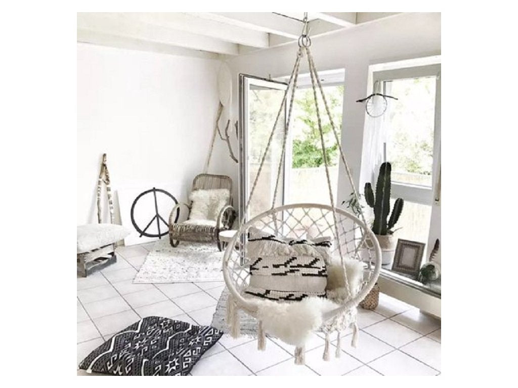 Spătarul înalt face posibil să vă culcați pe el și să vă odihniți. Spătarul este echipat cu 4 frânghii separate, finisate cu jante metalice. Acest lucru face posibilă suspendarea acestuia. Există două moduri de montare - suspensie de frânghii pe un cârlig - suspendarea a două frânghii pe două cârlige DATE TEHNICE: • sarcina maxima: pana la 120 kg • 4 frânghii împletite puternice • produsul este potrivit pentru spălare • suprafata de sedere